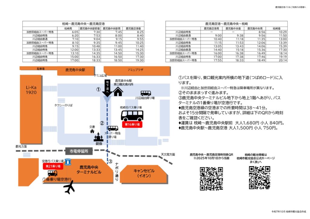鹿児島空港行バスをご利用の方へ(中央駅乗換案内図)令和7年10月1日更新