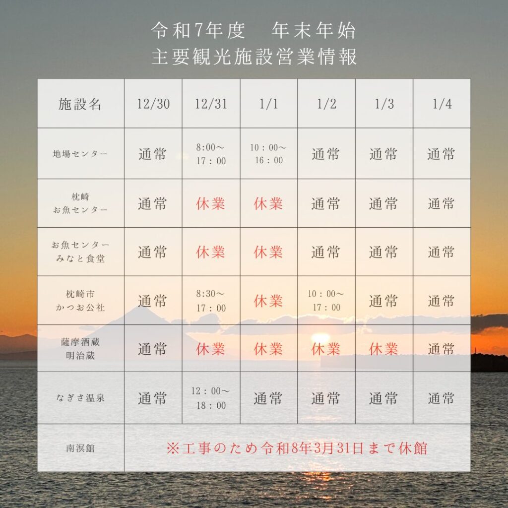 2025~2026年末年始 主要観光施設の営業情報