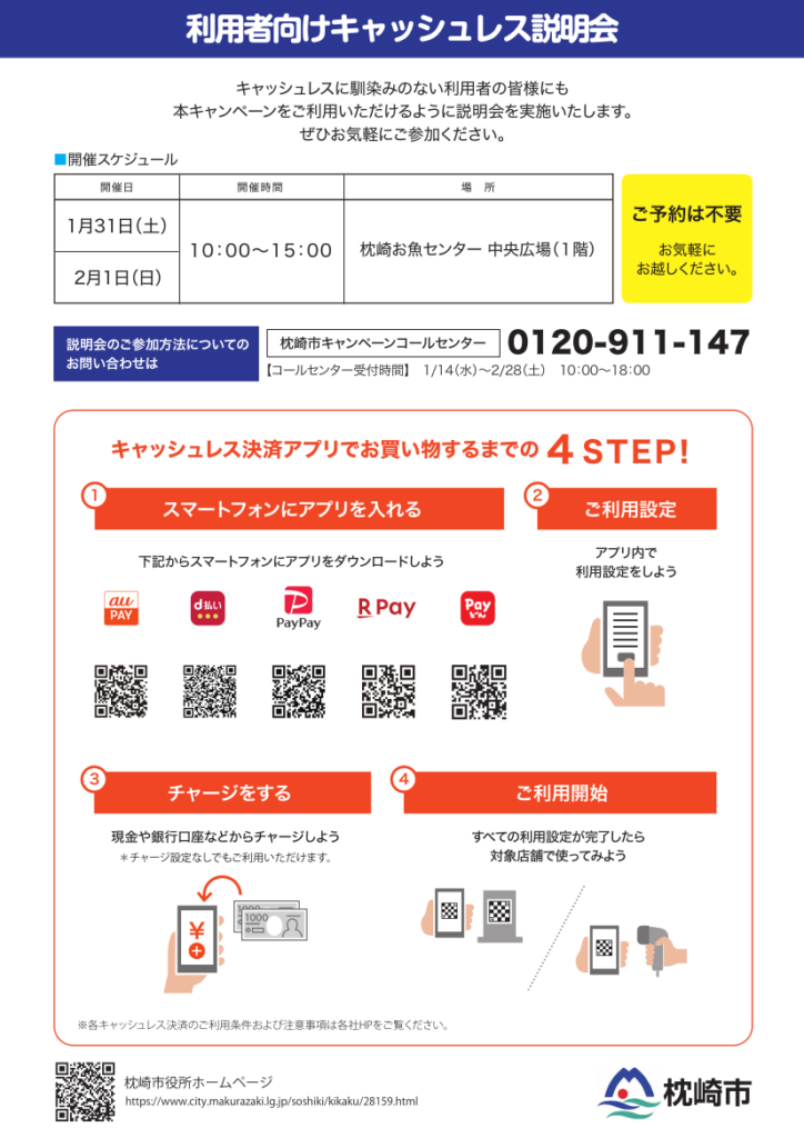 キャッシュレス決済キャンペーンチラシPDF : https://www.city.makurazaki.lg.jp/uploaded/life/28159_45033_misc.pdf